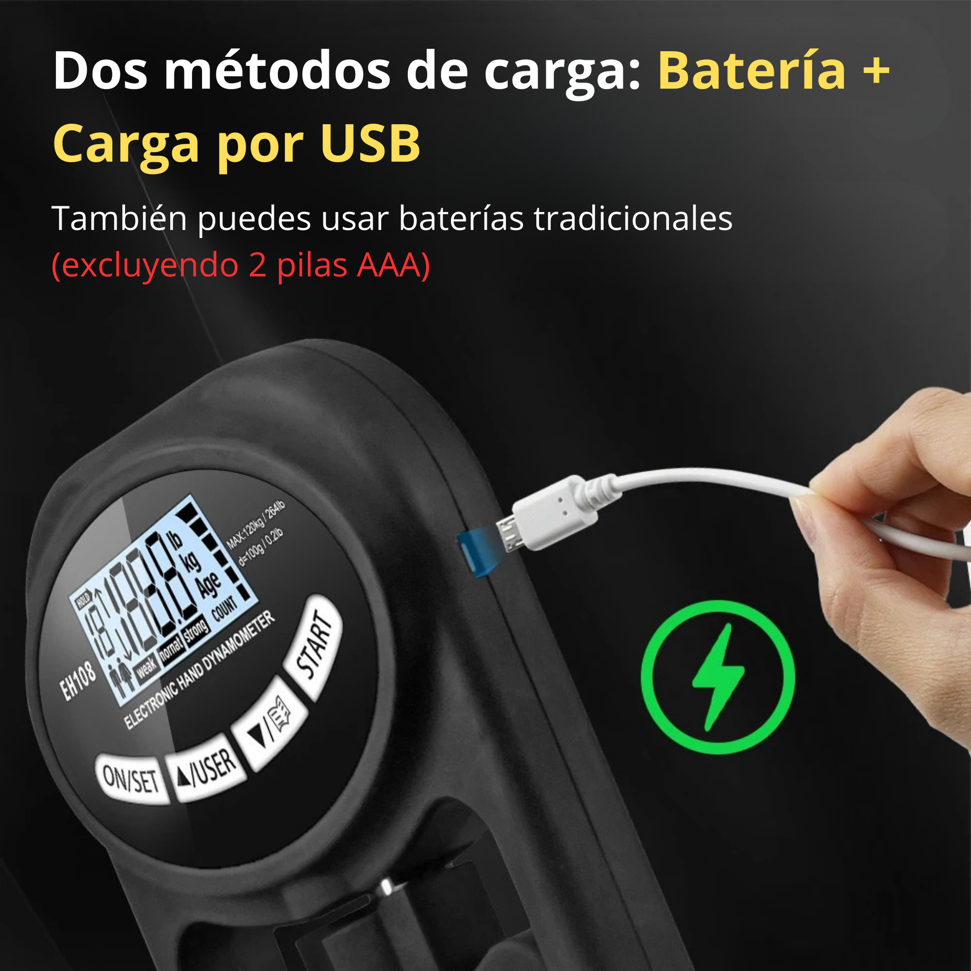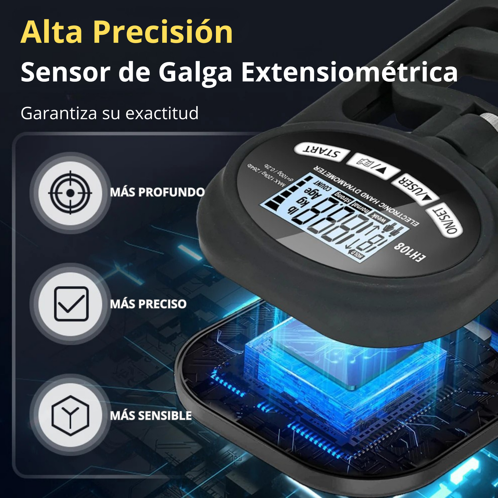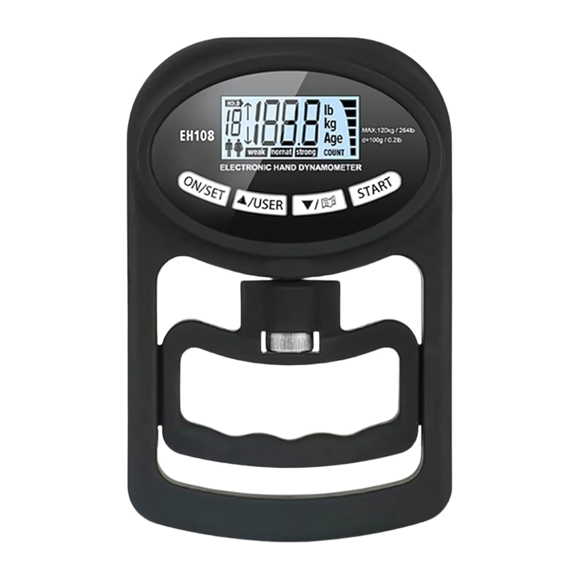 Equipado con un sensor de tensión de alta precisión, mide con exactitud tu fuerza de agarre hasta 120 kg (265 lbs). Ideal para deportistas, entrenadores, fisioterapeutas y para cualquier persona que quiera controlar su progreso.